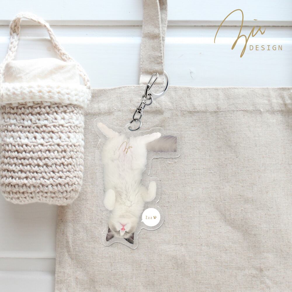 スヤスヤ可愛い寝姿をアクリルキーホルダーにしました。